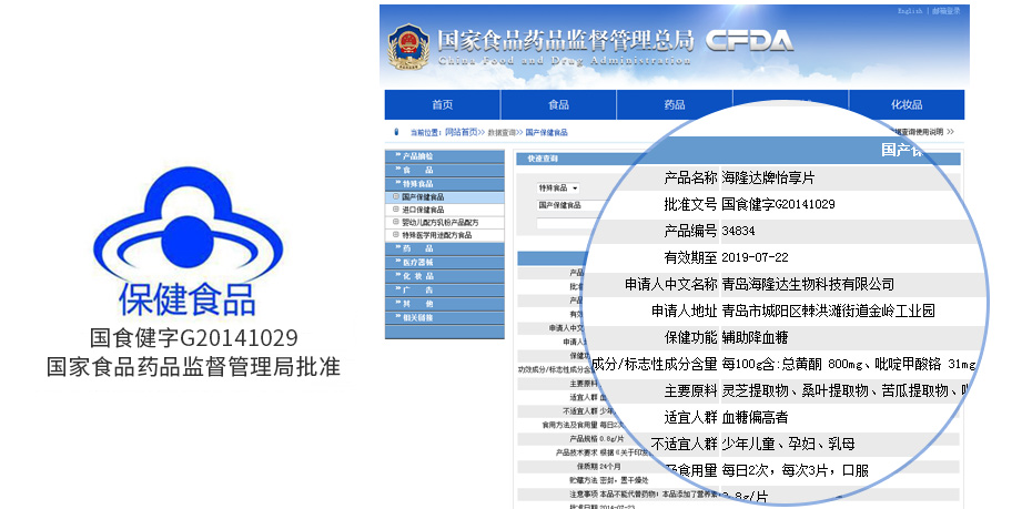 【主要原料】靈芝提取物、桑葉提取物、苦瓜提取物、吡啶甲酸鉻、淀粉、羧甲基淀粉鈉、硬脂酸鎂、二氧化硅。